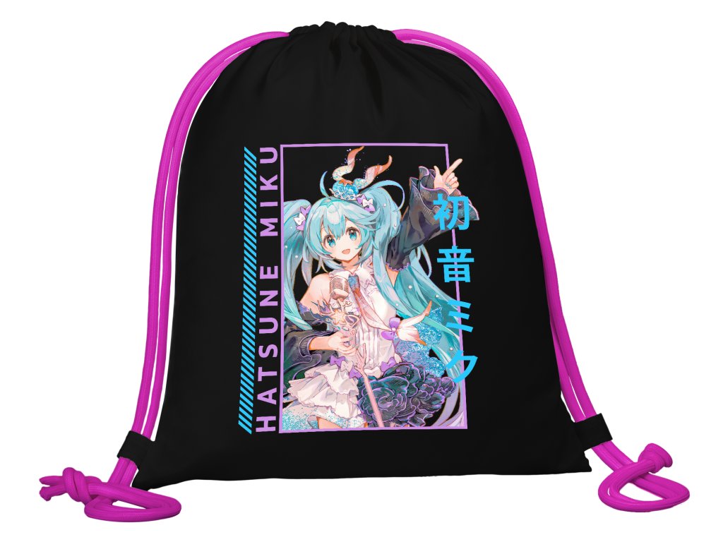 Rozšiřte svůj osobní inventář bavlněným vakem s originálním motivem Hatsune Miku.