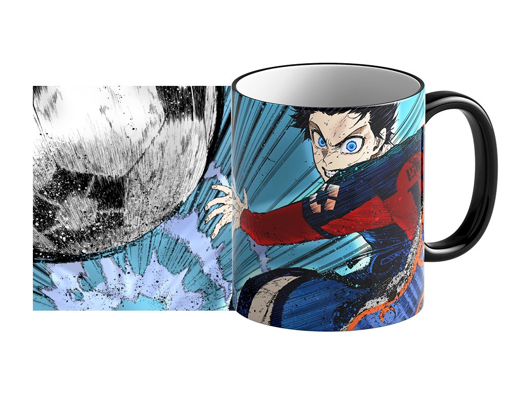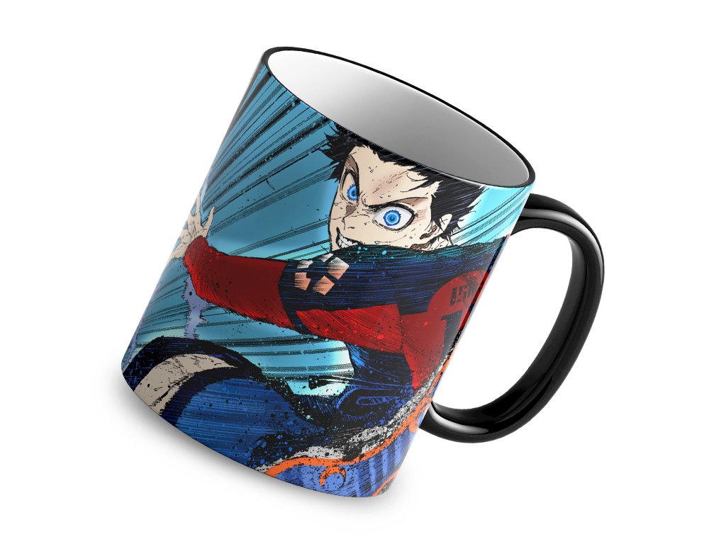 Keramický hrnek s kvalitním potiskem Isagi z oblíbeného anime/mangy Blue Lock.