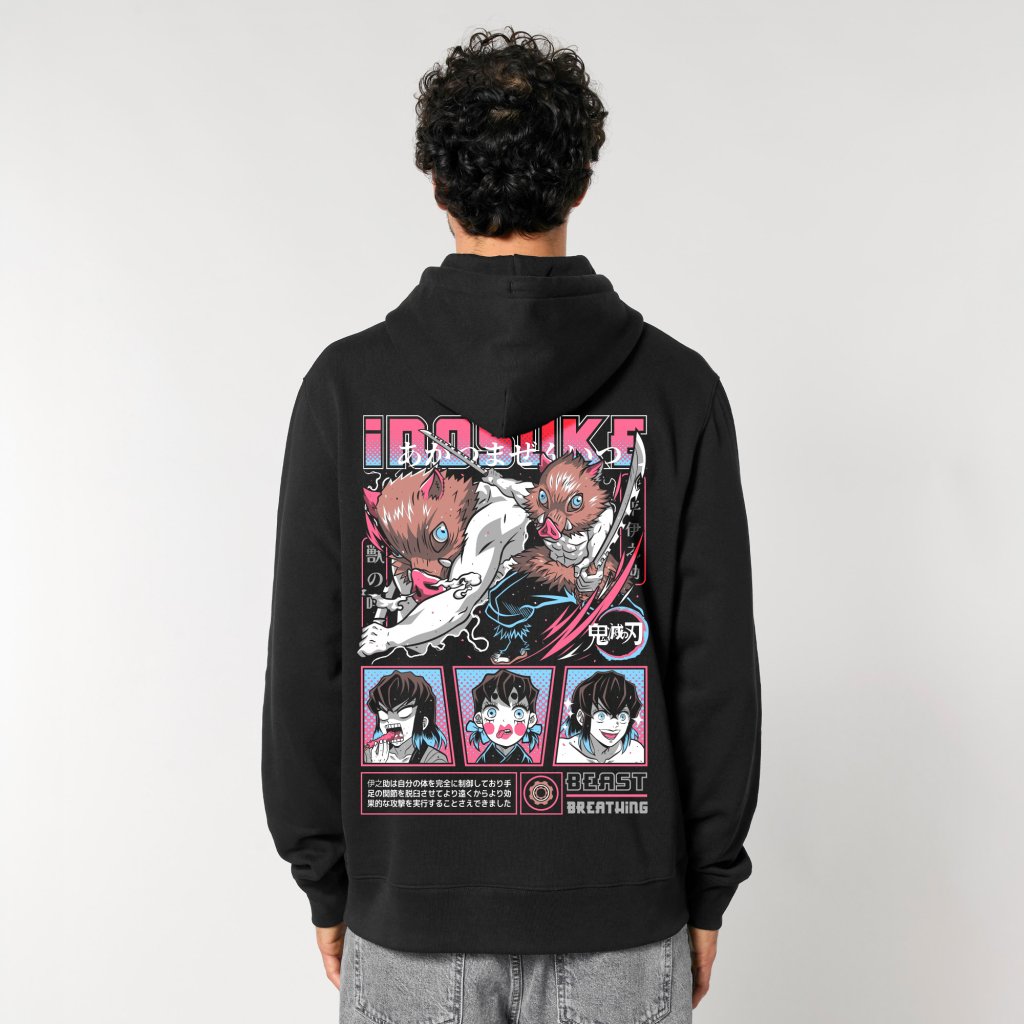 Demon Slayer merch v prémiové kvalitě. Mikina z hřejivé plnočesané organické bavlny s vysokou gramáží (350 g/m²) a odolným sytým potiskem. Perfektní střih s dvouvrstvou kapucí, který precizně drží tvar.