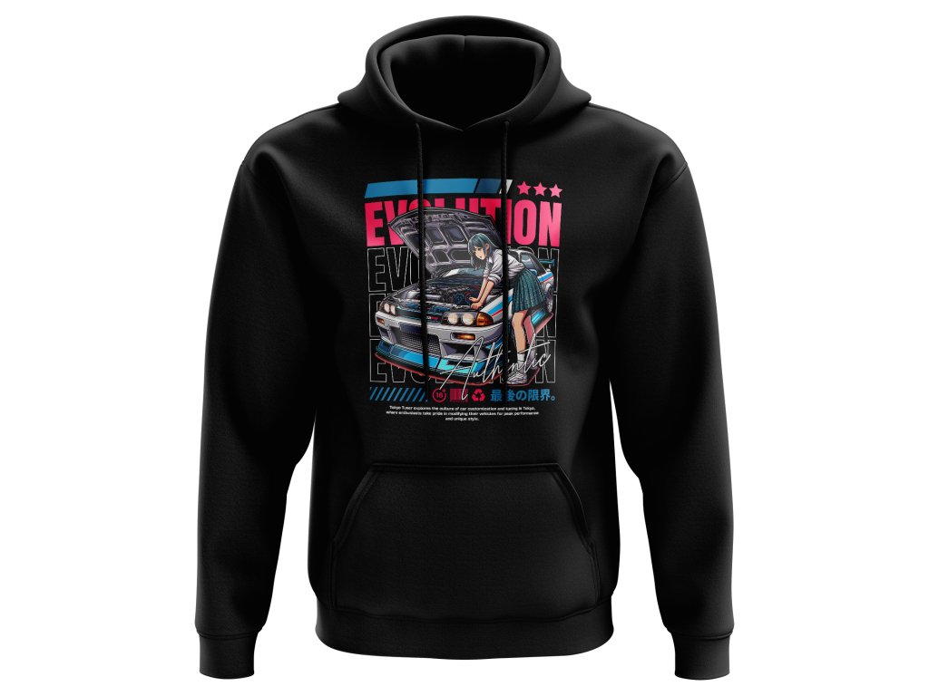 Stylová bavlněná mikina s motivem Evolution pro fanoušky JDM.