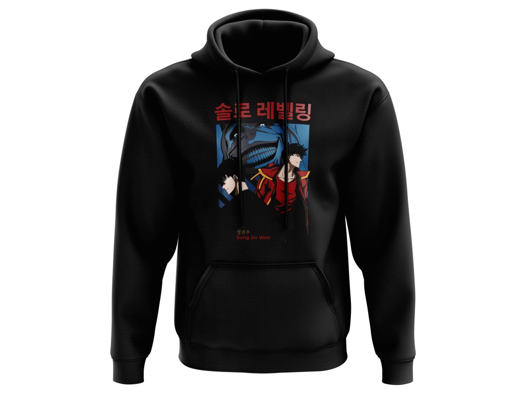 Stylová bavlněná mikina z anime Solo Leveling s potiskem Sung Jin-Woo Red.