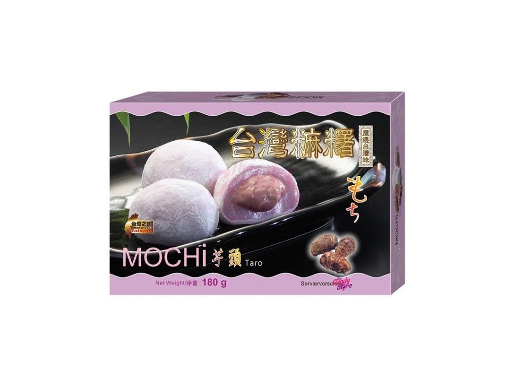 Oblíbené asijské rýžové koláčky mochi s příchutí rostliny Taro.