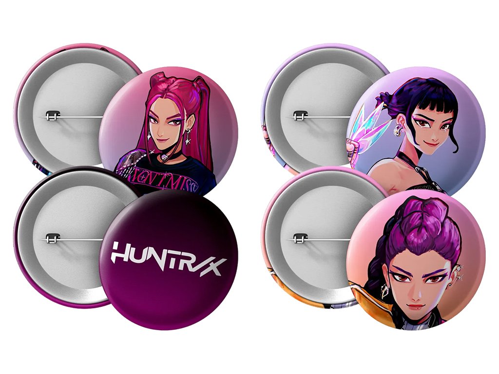 Rozšiř svou kolekci o stylovou sadu placek s originálním motivem z oblíbeného filmu K-Pop Demon Hunters.