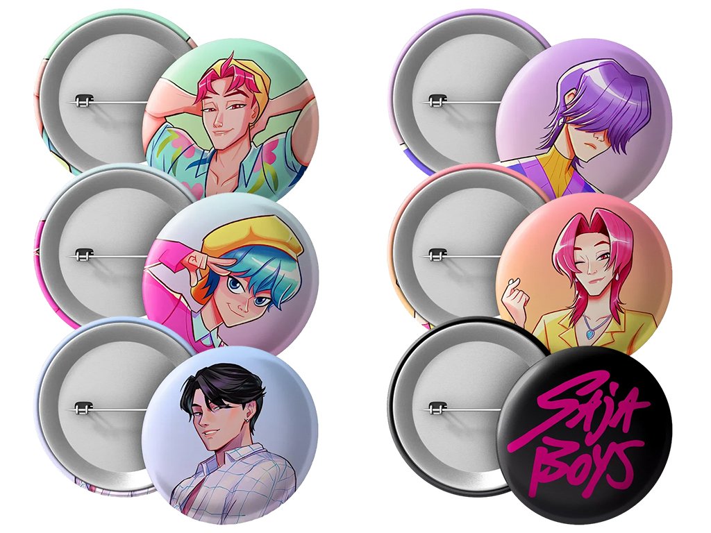 Rozšiř svou kolekci o stylovou sadu placek s originálním motivem z oblíbeného filmu K-Pop Demon Hunters.