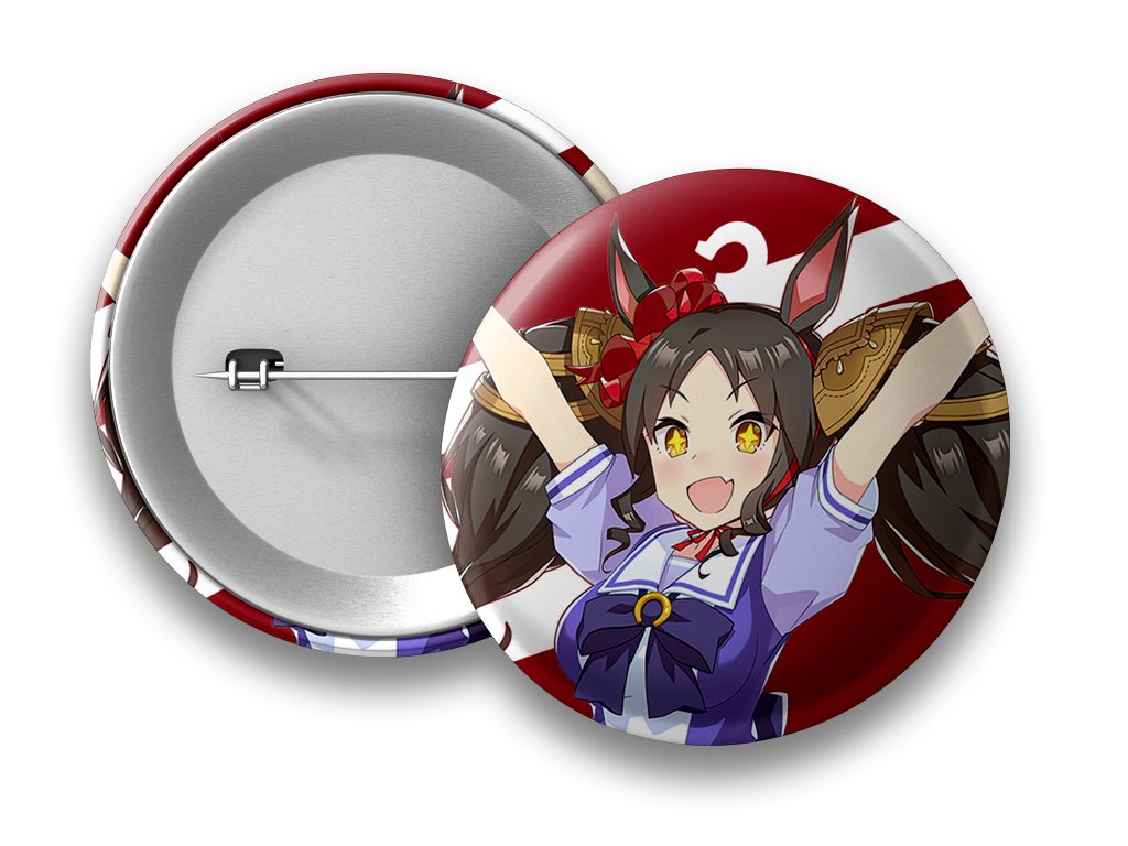 Oživ svůj outfit nebo sbírku s touto jedinečnou plackou s Marvelous Sunday, ikonickou postavou ze světa Umamusume! 🌟✨