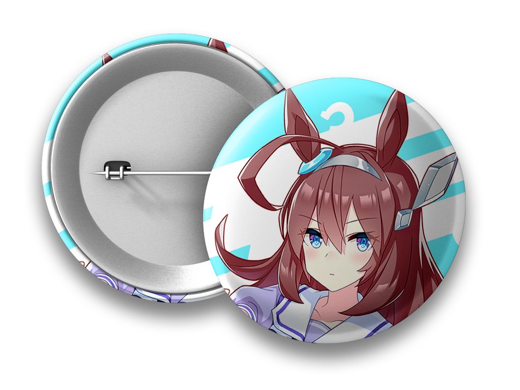 Oživ svůj outfit nebo sbírku s touto jedinečnou plackou s Mihono Bourbon, ikonickou postavou ze světa Umamusume! 🌟✨