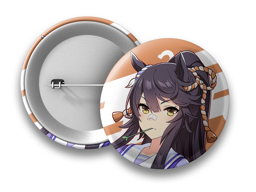 Oživ svůj outfit nebo sbírku s touto jedinečnou plackou s Narita Brian, ikonickou postavou ze světa Umamusume! 🌟✨