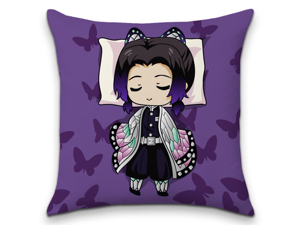I za klidným úsměvem se skrývá síla, která potřebuje odpočinek. Dodej svému pokoji eleganci s tímto okouzlujícím polštářem, na kterém odpočívá hmyzí sloup Shinobu Kocho z Demon Slayer.