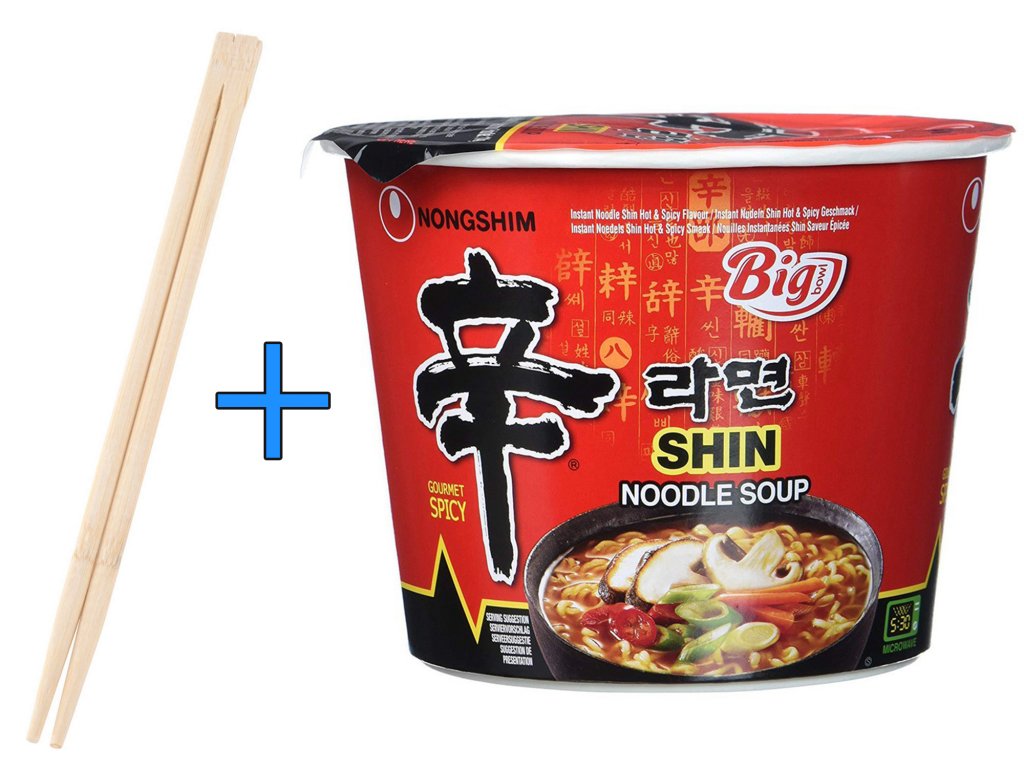 SHIN BIG BOWL NOODLE SOUP 114g + Hůlky jednorázové bambusové