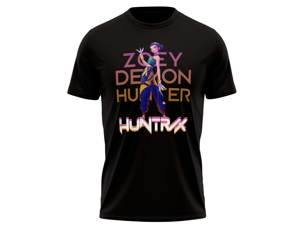 Bavlněné tričko se stylovým designem je velice povedeným kouskem pro fanouška anime K-Pop Demon Hunters.