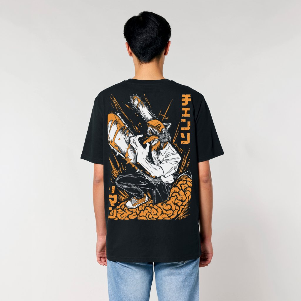Chainsaw Man merch v prémiové kvalitě. Tričko ze 100% organické bavlny s vysokou gramáží (190 g/m²) a odolným sytým potiskem. Perfektní střih trička, které drží tvar. Skvělý dárek pro fanouška.