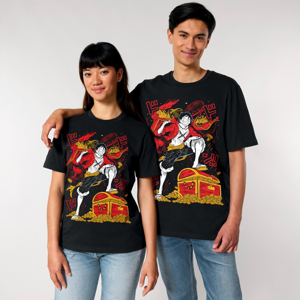 One Piece merch v prémiové kvalitě. Tričko ze 100% organické bavlny s vysokou gramáží (190 g/m²) a odolným sytým potiskem. Perfektní střih trička, které drží tvar. Skvělý dárek pro fanouška.