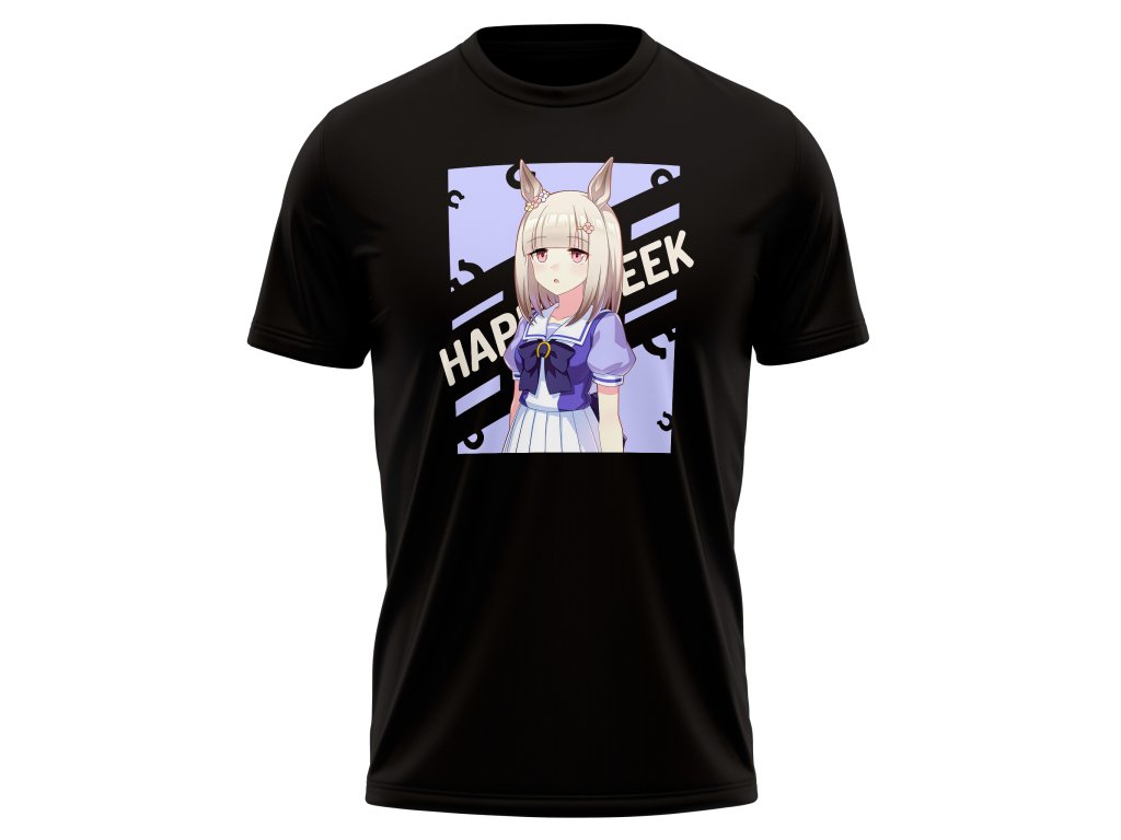 Přidej si do šatníku stylové tričko s postavou Happy Meek a ukaž svým kamarádům, že patříš mezi skutečné fanoušky hry/anime Umamusume: Pretty Derby! 🎮 Toto tričko kombinuje pohodlí a unikátní design, který na první pohled zaujme každého fanouška této ikonické hry/anime.